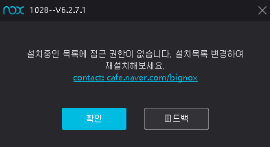 1028, 설치중인 목록에 접근 권한이 없습니다. 설치목록 변경하여 재설치해보세요.