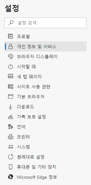 '설정' > '개인 정보 및 서비스' 메뉴에 들어가서,