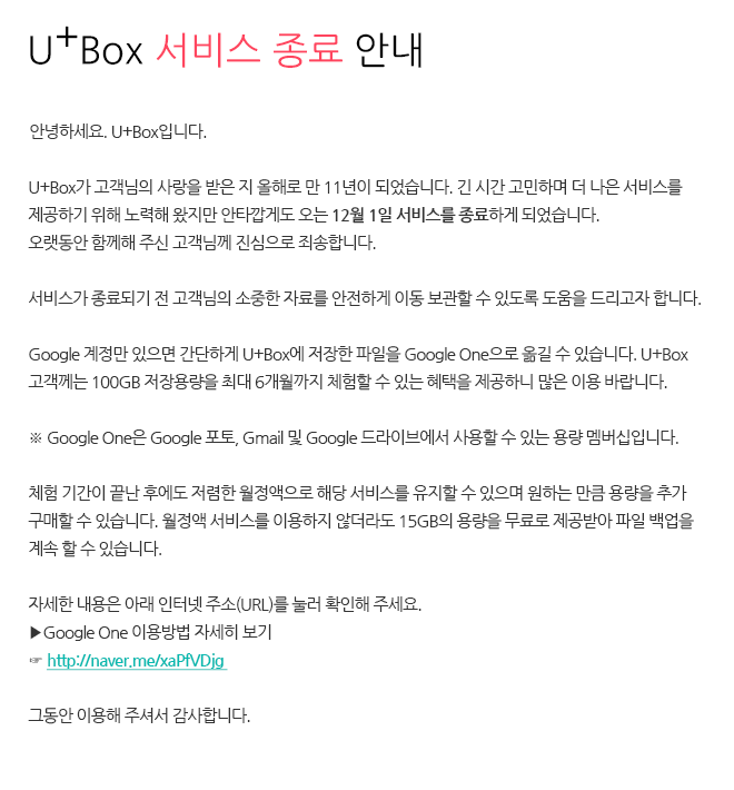 U+Box 서비스 종료 안내
