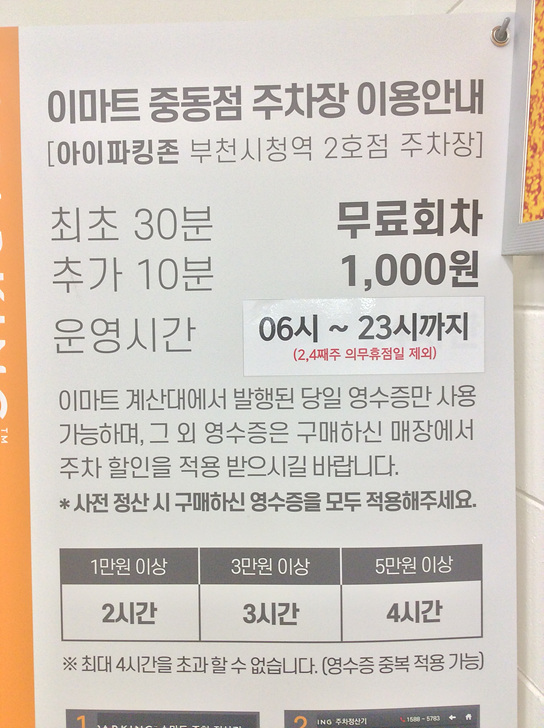 중동 이마트가 얼마전부터 주차요금을 무인 정산 방식으로 바뀌었다.