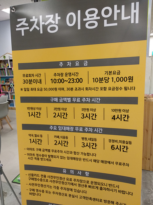 - 이마트 구매 금액별 무료주차 시간과 합산 가능